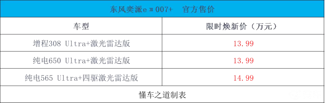 东风奕派旗下eπ007+车型近日正式上市,共推出三款配置版本,限时优惠后售价区间为13.99万元至14.99万元。与此同时,现款eπ007车型也进行了价格调整,当前售价为11.59万元至12.99万元。这款中大型轿车通过多项升级,在智能驾驶与动力系统领域展现出更强的竞争力。