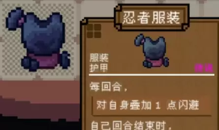 其中包括青铜胸甲、束腰外衣以及忍者服装等。其中忍者服装作为紫色品质道具,广受玩家青睐。它不仅能大幅提升闪避速度,还可移除100%的格挡效果,在角色行动结束后自动清除自身格挡状态,适合用于高机动性流派。对于战场灵活性不足的情况,该装备能显著改善操作体验与生存表现。