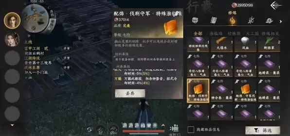 1、在任务最终阶段交付前务必存档,提交任务后会获得饰品临淮珠,此时可通过SL操作刷出极品属性的临淮珠。经过多次尝试,成功刷到三寂灭词条,能有效减少15%技能冷却时间。