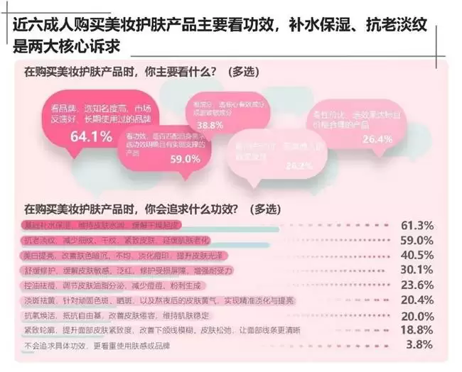 消费者行为调研表明,美妆产品选购已进入理性与专业并存的新阶段。经济观察报发布的消费调研报告指出,超九成受访者会主动关注护肤品成分,59%的消费者会根据自身肤质精准选择有效成分。在经典成分认知度方面,"玻尿酸"以66.8%的知晓率高居榜首,"胶原蛋白"和"烟酰胺"分别以61.9%和57.3%的认知度位列二、三位。