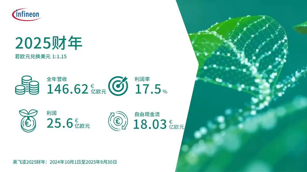 英飞凌2025财年营收146.62亿欧元,同比下滑2%