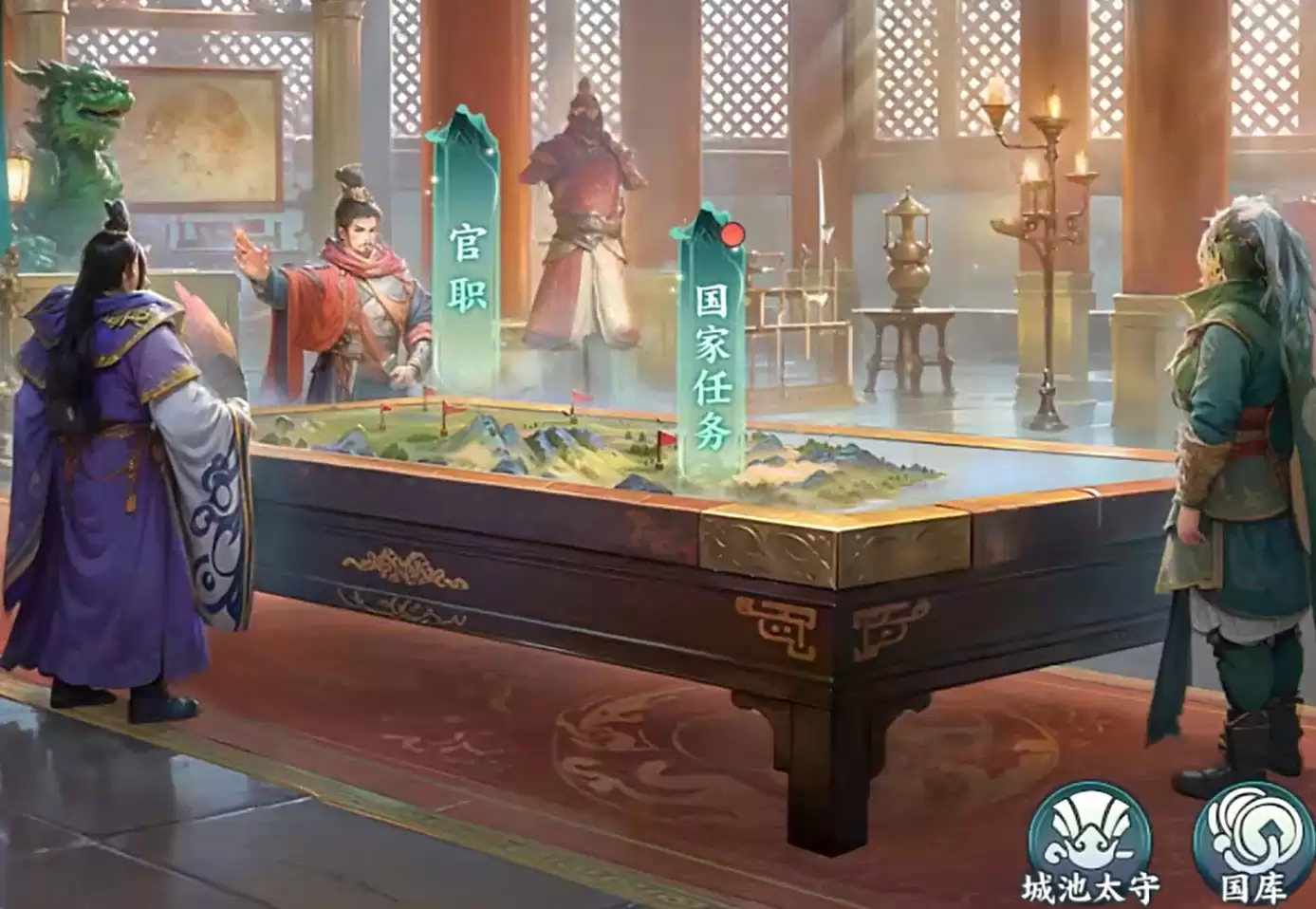 此外,从玩家加入国战开始,所有国家任务中的个人任务进度都会开始累积,而面向全体玩家的任务要求则会在第一位加入该国的玩家开启任务后进行累积。所以即使玩家加入国家的时间比别人晚,也只需完成个人任务就能领取前面的国家任务奖励,直到自己的任务进度与先加入的玩家持平。完成国家任务会给玩家元宝、粮食等奖励,报酬十分丰厚。如果玩家觉得所加入的国家做任务比较慢,也可使用转国卡重新更换一个国家。