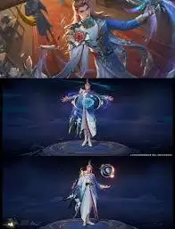 从流出的图片来看,这款皮肤在设计上独具匠心。明世隐身着华丽服饰,以金色为主色调,精致的纹路点缀其间,尽显尊贵气质。他的发型同样经过精心打理,独特的发髻造型平添了几分古韵。手中法器同样璀璨夺目,散发着神秘光芒,与整体造型相得益彰。