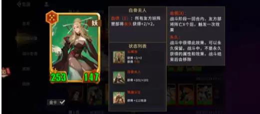 妖族阵容:面对大秦扎堆的对手时,选择妖族阵容往往能实现逆风翻盘。不少玩家可能认为玉面狐狸是关键,其实不然,铁扇公主才是阵容的灵魂。在当前版本中,铁扇公主已经得到显著加强。以往需要触发血怒2才能有效发挥输出能力,现在只需召唤友方妖阵营部甲,就能持续提升全体攻击力。一旦阵容成型,就能展现出惊人的杀伤力。妖族的强势主要依赖两个角色:首选是白骨夫人。只要敌方妖阵营阵亡一个单位,所有妖将就能获得永久的属性加成,直接触发属性增益。