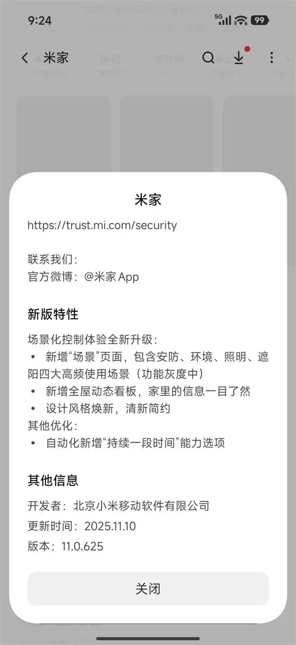 11月11日,多位用户反馈小米智能家App已开始推送全新版本更新。