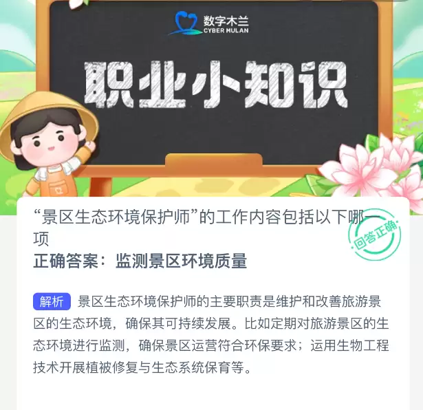景区生态保护师工作解读:支付宝蚂蚁新村2025年最新答案
