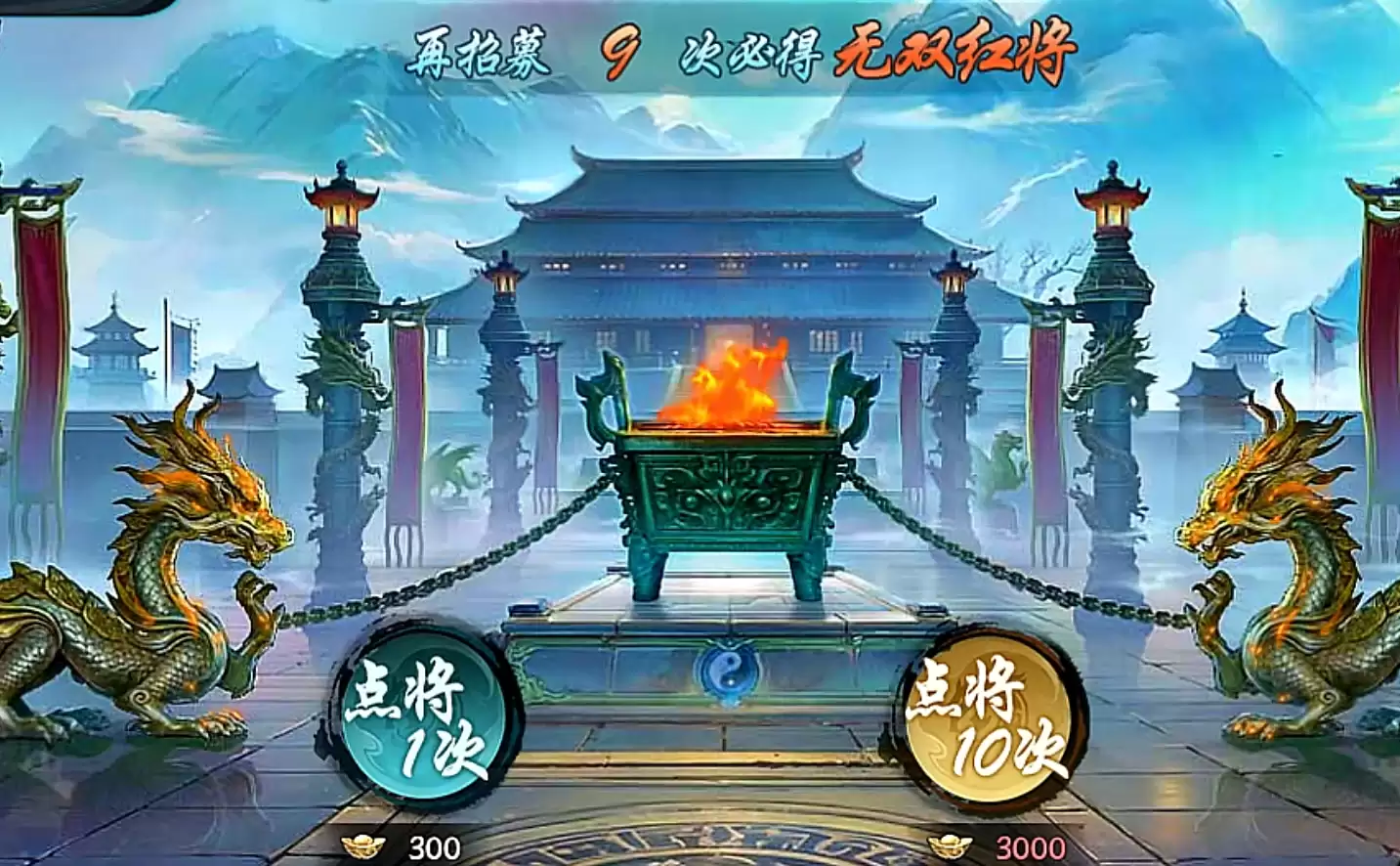 此外,点将台设有红将保底机制,玩家最多只需投入三十抽的成本,必然能获得一名无双红将。至于具体能获取哪名红将则完全随机,玩家无法指定。抽卡保底可进行累计,即便玩家隔几天抽一次,也能享受到保底效果,不需要一次性抽完三十次才能拿到红将。当然了,如果玩家还没抽满三十次就已经抽出了红将,则保底所需抽卡次数会直接重置。橙将则没有保底机制,能否抽出本体还是武将碎片全凭运气,不过橙将合成所需的碎片数量较少,因此相对来说也更容易获取。