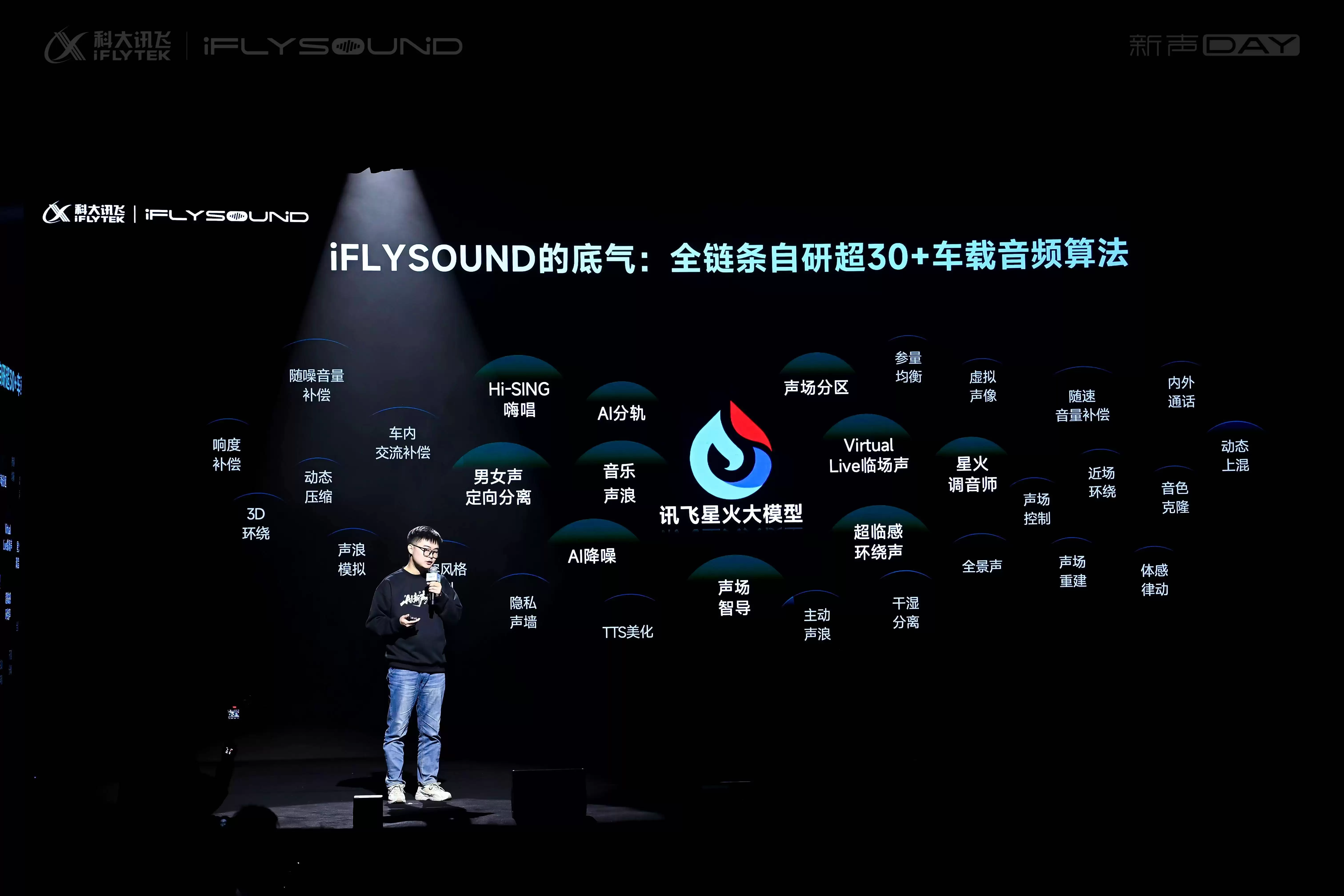一场以“AI新声代”为主题的科技盛典在合肥大剧院拉开帷幕——科大讯飞iFLYSOUND新声DAY品牌发布会正式举行。这场活动不仅汇聚了科大讯飞核心团队、智能汽车领域负责人,更吸引了全国行业专家、媒体代表及用户代表齐聚一堂,共同见证车载音效领域的革新突破。作为第八届世界声博会暨科大讯飞全球1024开发者节的重要环节,发布会通过沉浸式技术展示与艺术化场景演绎,重新定义了汽车空间的听觉体验。