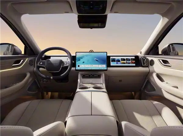 内饰方面,星途ET5打造了由10.25英寸液晶仪表、15.6英寸中控屏和12.3英寸副驾娱乐屏组成的三联屏座舱,搭载高通骁龙8255芯片,支持秒速开机与“三指飞屏”等流畅交互。车机系统深度融合了科大讯飞与DeepSeek AI大模型,智能语音助手具备连续对话与场景化服务能力。