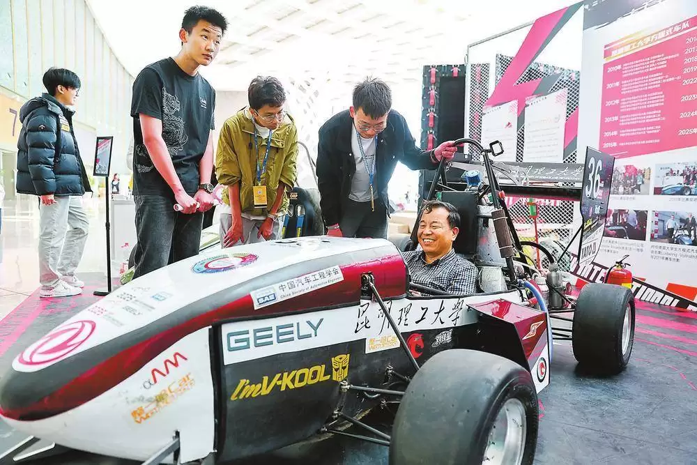 在车展现场,一款由昆明理工大学KMUST方程式车队独立设计、制造并调试的方程式赛车格外引人注目。这款赛车不仅展现了昆明理工大学在汽车工程领域的深厚实力,也体现了年轻学子对汽车科技的无限热情和创造力。市民们纷纷驻足观看,不少人还有机会亲身体验这款赛车的独特魅力。