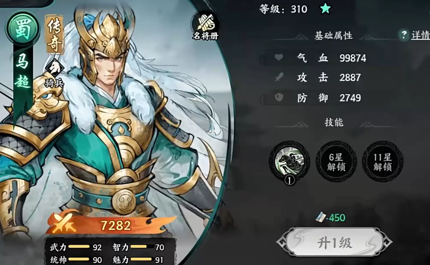 马超的怒气技能具备优秀的群体伤害能力,召唤的骑兵可对行进路线上的敌人造成极高伤害,且该伤害不会因命中多个目标而衰减,在战场上特别实用。当技能升至2级后,伤害更会大幅提升。如果能将马超培养到11星,他还能每5秒强化下一次攻击。