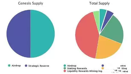 Osmosis 在创世时将拥有最初发行的 1 亿美元 OSMO,由 Fairdrop 接收者和战略储备平均分配。