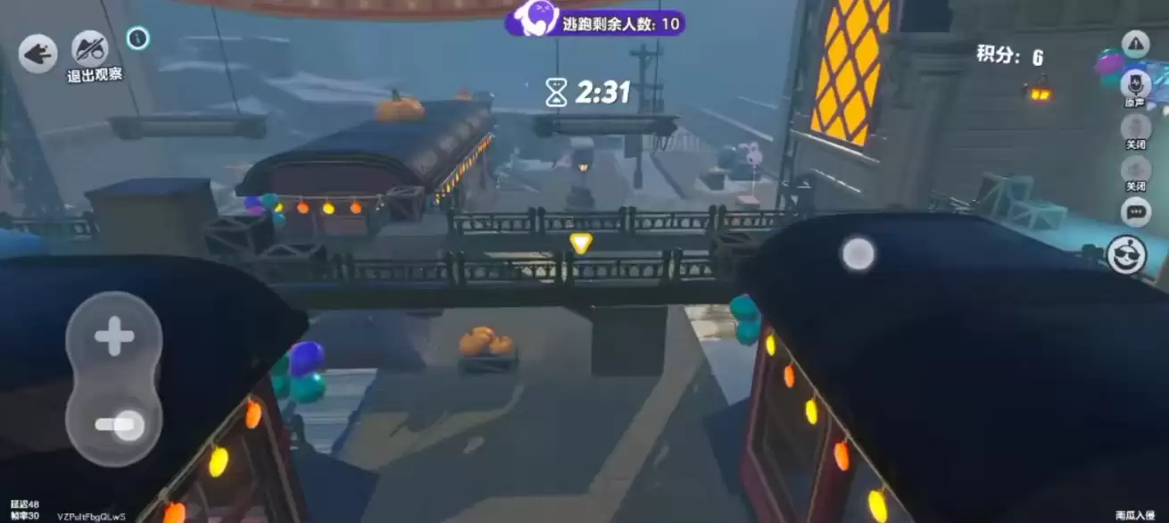 火车尾部的指示牌也是个绝佳藏身处,操作起来非常简单。只要掌握好跳跃技巧,就能轻松跃上站牌顶端。这里不仅可以躲避下方南瓜怪的搜查,还能随时观察周围的动静。发现危险时能快速跳下转移阵地,对于喜欢隐蔽作战的玩家来说非常友好。需要注意的是,告示牌背后的墙是假的,千万不要贸然尝试。餐厅旁边的大灯位置也非常适合隐藏,跳上餐桌后按下跳跃键就能跃上小木板上方。