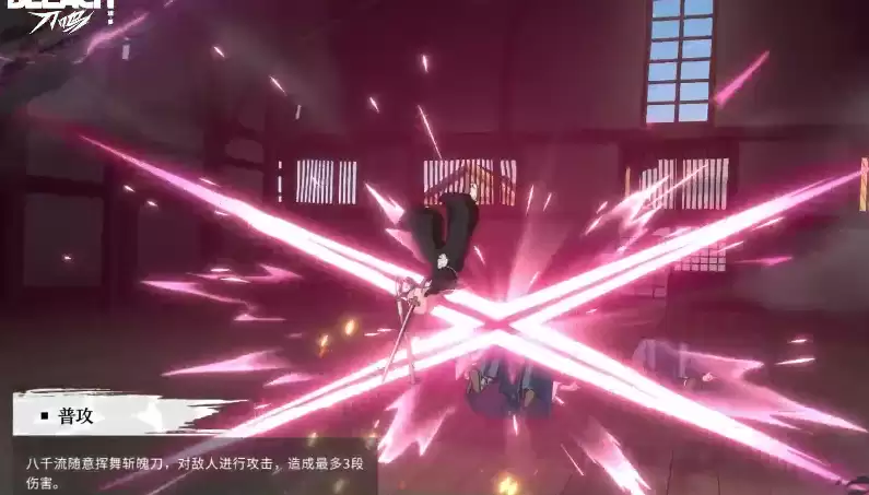 草鹿八千流的普通攻击为三段式连续斩击,是她场上进行基础输出的主要手段。该技能动作流畅,可快速衔接其他技能,在常规对战或连招起手阶段都具有较高实用性。虽然单次伤害不够突出,但配合后续技能切换能有效提升整体输出节奏。