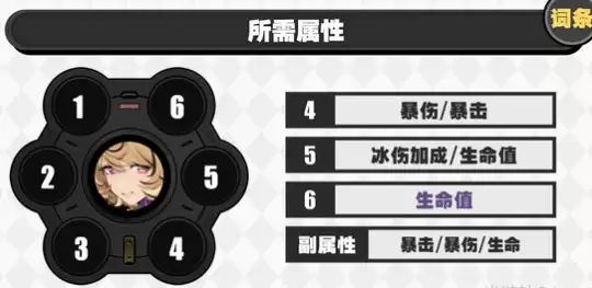 ① 6号位主词条建议选择生命,“能量自动回复”并不会提升闪避能量回复效率。