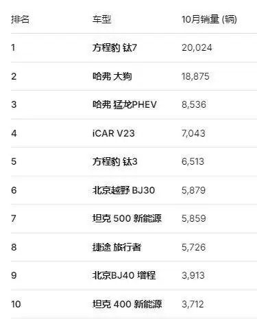 10月方盒子SUV销量:钇为7登顶,哈弗猛龙坚守市场格局