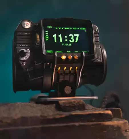 最近,B社官方周边商城Bethesda Gear上架了一款从《辐射3》中走出来的精致复刻周边——一比一还原的哔哔小子(Pip-Boy)。这款产品不仅完美复现了游戏中标志性的外观,还内置了实用的解谜小游戏和时钟功能,售价定为299.99欧元。