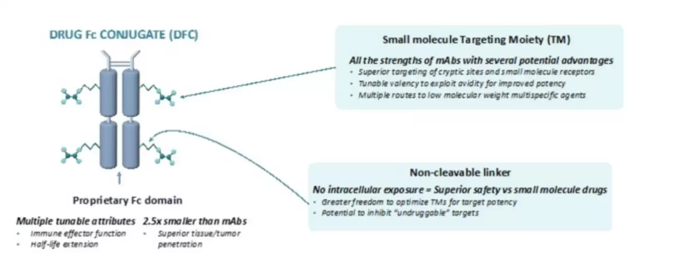 这种创新分子被定义为DFC药物。不过,DFC的作用机制与ADC等传统药物截然不同——DFC旨在结合细胞外靶标,而ADC的核心则是进入靶细胞后释放细胞毒性药物。相比ADC和单克隆抗体,DFC分子量更小,具有更佳的组织渗透性,且其设计目标是通过多个作用位点实现广谱抗病毒效果。