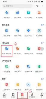 打开WPS手机端应用,在主界面下方找到"应用"选项并点击。进入应用页面后,滑动找到"PDF工具"并点击进入。在PDF工具页面中,选择"PDF转Word"功能。此时会弹出文件选择界面,你可以从手机本地存储中找到需要转换的PDF文件,选中后点击"确定"导入。