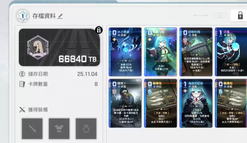 这里分享几个避坑小技巧:基础卡不能少于两张。不管是初始基础卡,还是商店中购买的基础卡,如果少于两张系统就会自动补卡,那之前丢弃的卡片就白白浪费了。其次,神卡和复制卡的搭配也要谨慎。组合卡的分数是比较高的,刚开始建议不要带太多,否则就可能超出限制。存档之间还会有联动效应,如果想要带出一些高价值的存档,可以搭配两个低价值的存档,这样成功的概率就会比较高。新手玩家可以选择从低难度开始尝试。