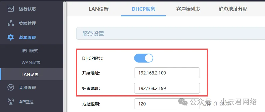 确认DHCP服务开启后,可以在DHCP客户端列表中查看是否包含AP的地址分配记录。
