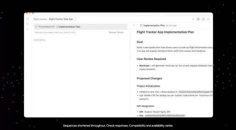 伴随模型发布的Google Antigravity平台引发开发者社区热议。这个基于Gemini 3构建的智能体开发环境,将AI从辅助工具升级为自主协作伙伴。开发者可通过专属界面直接授权智能体访问编辑器、终端和浏览器,实现从需求分析到代码验证的全流程自动化。现场演示中,基于Gemini 3的智能体独立完成了航班追踪应用的开发,包括代码编写、浏览器交互和效果验证等完整环节。