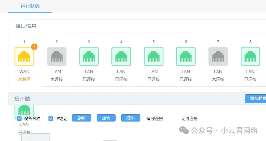 这位用户家里的网络设备其实并不复杂,就是一台普通的家用路由器配合几个AP面板。两年间一直运行良好,偏偏最近网络变得极不稳定,只要一断网,路由器的WAN口就会显示“未连接”。