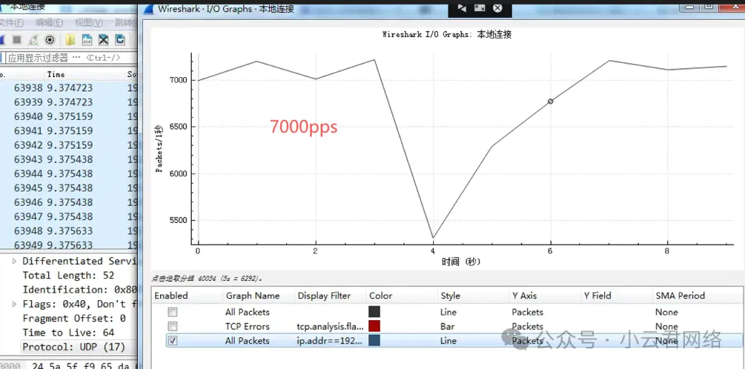 所以从报文分析来看,真正拖垮家庭宽带的并非3.2Mbps的上行流量,而是高达7000pps的数据包发送频率。