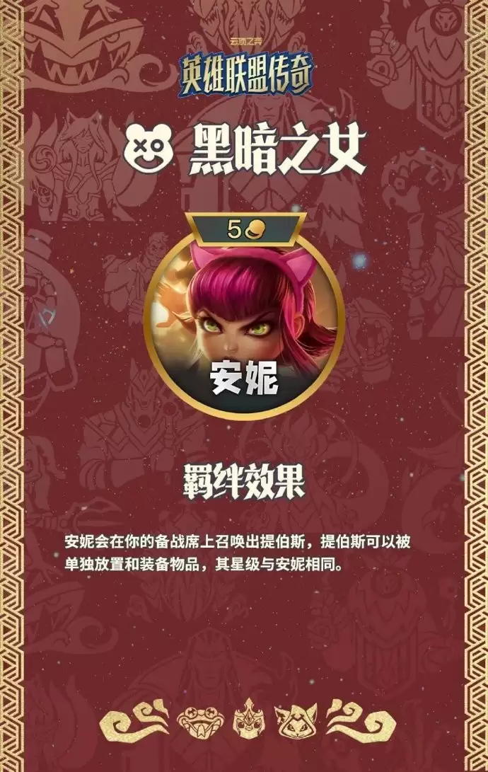 安妮会在你的备战席上召唤出提伯斯,提伯斯能够被单独放置并装备物品,其星级与安妮保持一致。