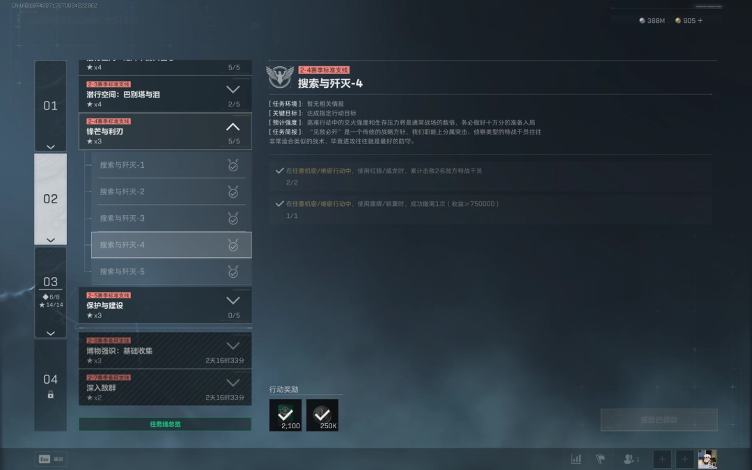 2、在任意机密/绝密行动中,使用露娜/银翼角色成功撤离1次(收益≥75000)