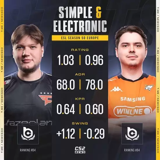本场比赛中s1mple与电子哥仅获得1.03 Rating和0.96 Rating,但他们已是队内表现最佳的选手,另外三名队员的数据更是令人不忍直视。
