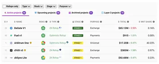 V 神表示,距离完全依靠代码保护 rollups 的世界还很遥远。目前,只有以下 5 个 rollups(其中只有 Arbitrum 是全EVM)达到了“第一阶段”。