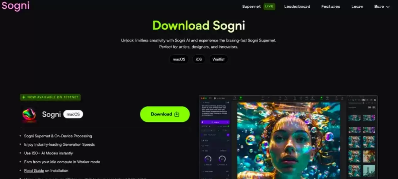 - 算力提供者: 下载模型,打开 Sogni 软件,提供电脑性能。