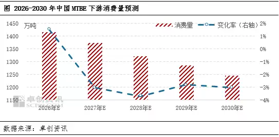 需求萎缩与供应端调整的双重压力下,MTBE行业盈利空间持续收窄。企业间的竞争愈发激烈,装置盈利的稳定性面临挑战。这种局面将进一步加速行业整合,促使企业寻求新的发展路径。数据显示,2026-2030年国内MTBE消费量将呈现先增后降的趋势,2026年或达峰值后逐步回落,主要原因是调油型需求减少幅度超过化工型需求的增长。