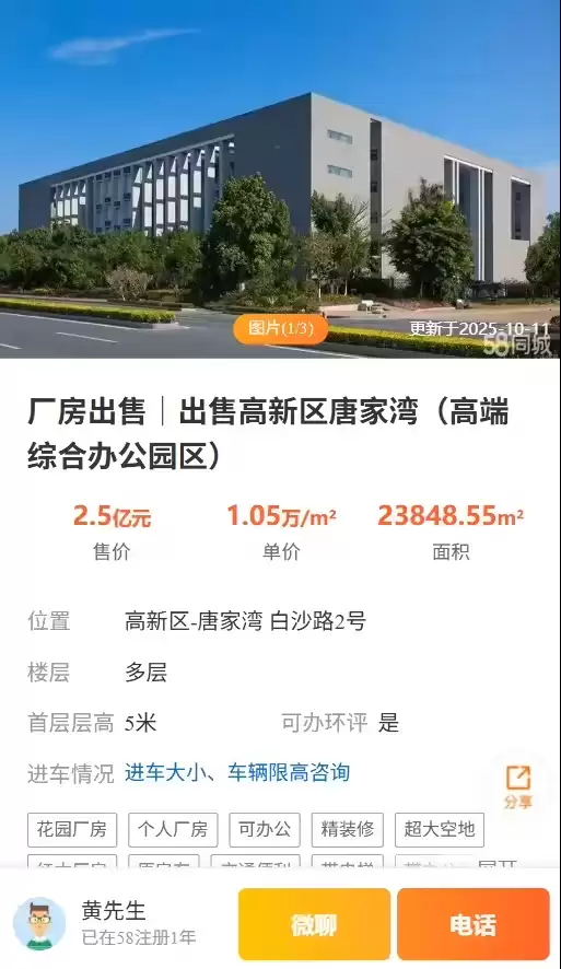 近日,一则关于高端办公园区整体出售的消息引发关注。据58同城平台信息显示,广东省珠海市高新区唐家湾有一处综合办公园区正在挂牌出售,标价高达2.5亿元。