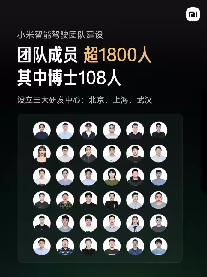 小米汽车智驾团队超1800人,博士占比108名