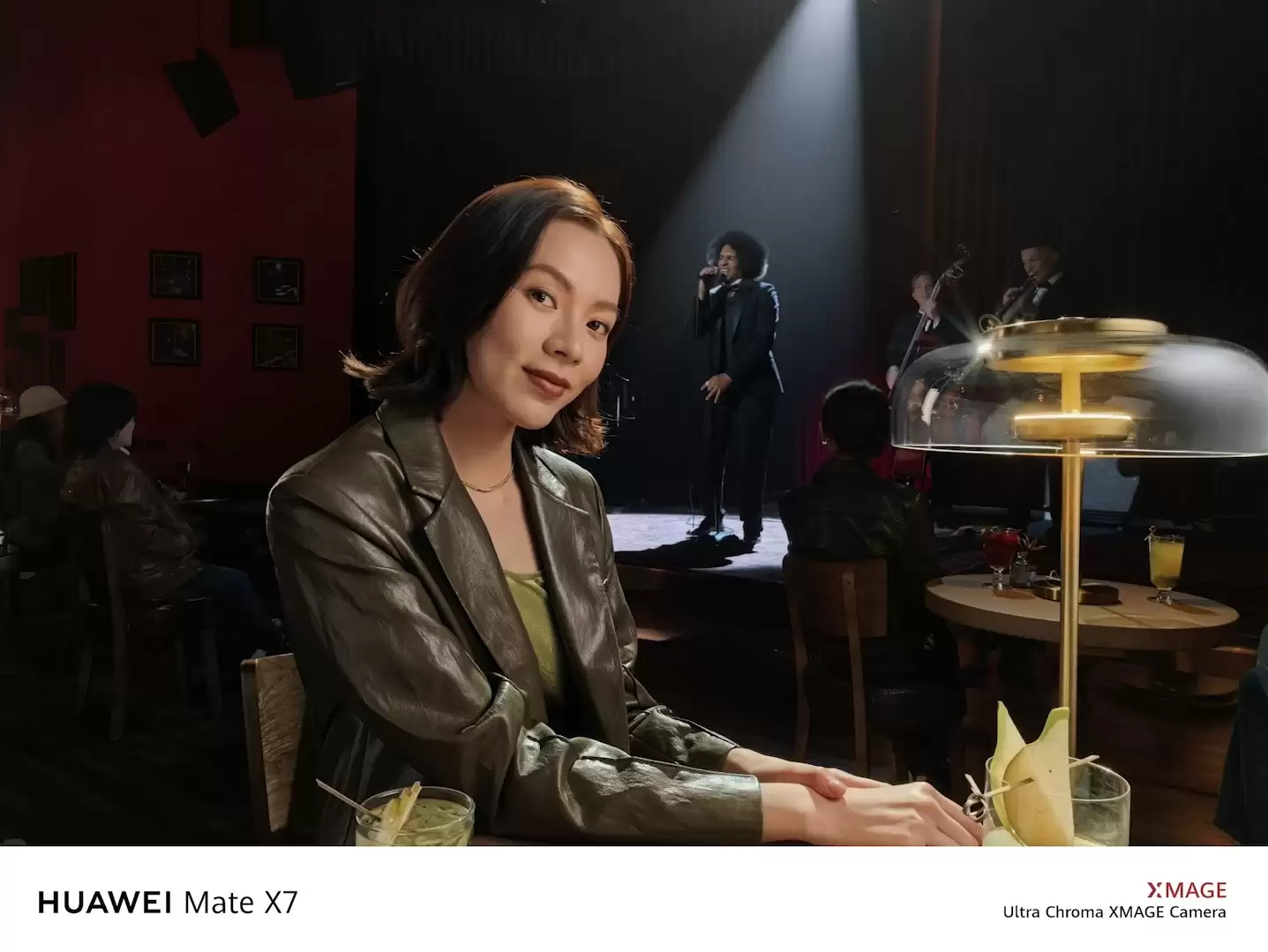 可以看到,在高饱和度的水族馆灯光环境下,华为Mate X7准确还原了人物肤色与环境氛围;在极限暗光的烛光场景中,画面依然保持了丰富的细节与出色的噪点控制;在舞台表演等高反差场景下,则同时保留了高光与暗部的丰富细节,让华为Mate X7在各种复杂光线条件下都能实现准确色彩还原,展现出媲美专业级的影像实力。