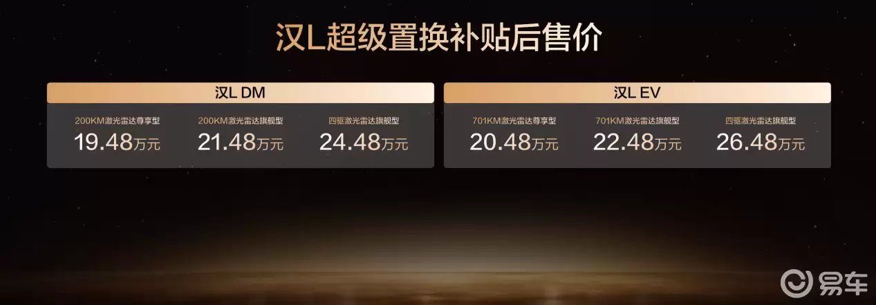 比亚迪全新旗舰车型汉L近日正式亮相,凭借革命性技术配置与智能互联生态体验,重新定义了高端新能源轿车标杆。新车推出补贴后19.48万至26.48万元的定价区间,提供纯电EV与插混DM双动力版本,同步带来全新车色、智能座舱升级及车家互联生态三大核心亮点。