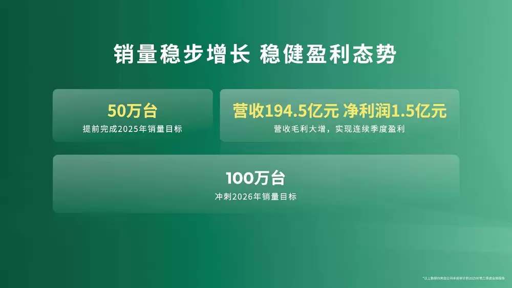 零跑汽车近期交出了一份亮眼的成绩单:2025年第三季度财报显示,公司净利润持续为正,达到1.5亿元,已连续多个季度实现盈利。报告期内实现营业收入194.5亿元,相比去年同期大幅增长97.3%;毛利率提升至14.5%,盈利能力显著增强。同时,零跑汽车在手资金储备充裕,达339.2亿元,并保持正向经营现金流。今年以来,零跑已连续8个月稳居中国新势力品牌销量榜首,10月单月销量突破7万辆,再次刷新中国新势力月销纪录。1-10月累计销量已突破50万辆,提前完成年度销量目标。此外,零跑以4.4万辆的单月出口量领跑新势力出海,主力市场覆盖德国、法国、意大利等欧洲发达国家。