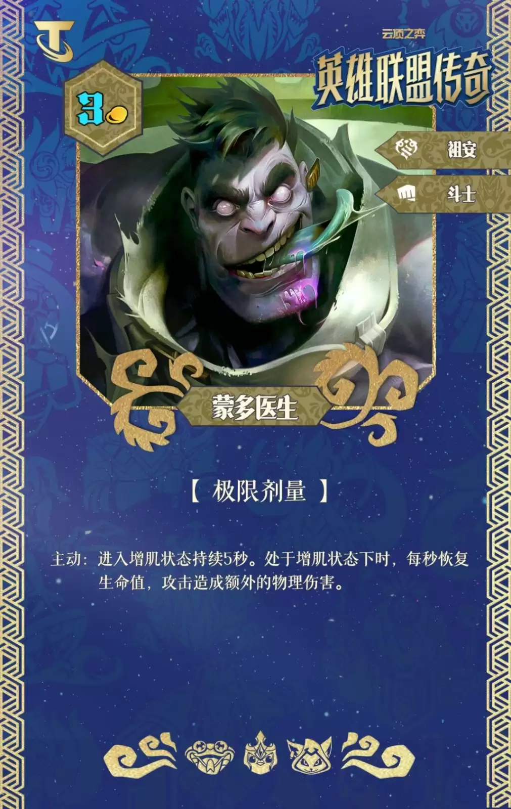 云顶之弈S16版本英雄联盟传奇主题PBE美测服迎来更新,新赛季将加入大量全新羁绊与弈子,同时还有不少老羁绊回归,老英雄的复刻。许多小伙伴都很好奇各个英雄的技能效果,下面就带大家详细了解S16蒙多医生羁绊效果一览。