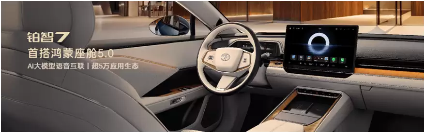 在纯电领域,铂智7的推出标志着丰田首次将中国智能生态深度融入全球车型。这款D级纯电轿车整合了华为DriveONE电驱系统、鸿蒙座舱5.0、Momenta R6智驾大模型及小米智能家居互联等顶尖技术资源。不同于简单的技术堆砌,广汽丰田通过"丰田式融合"标准,将华为鸿蒙座舱与TSS4.0智驾系统进行底层协议打通,确保多设备协同的流畅性与安全性。这种深度共创模式,使铂智7既保留了丰田的品控基因,又具备中国智能电动车的敏捷响应特性。