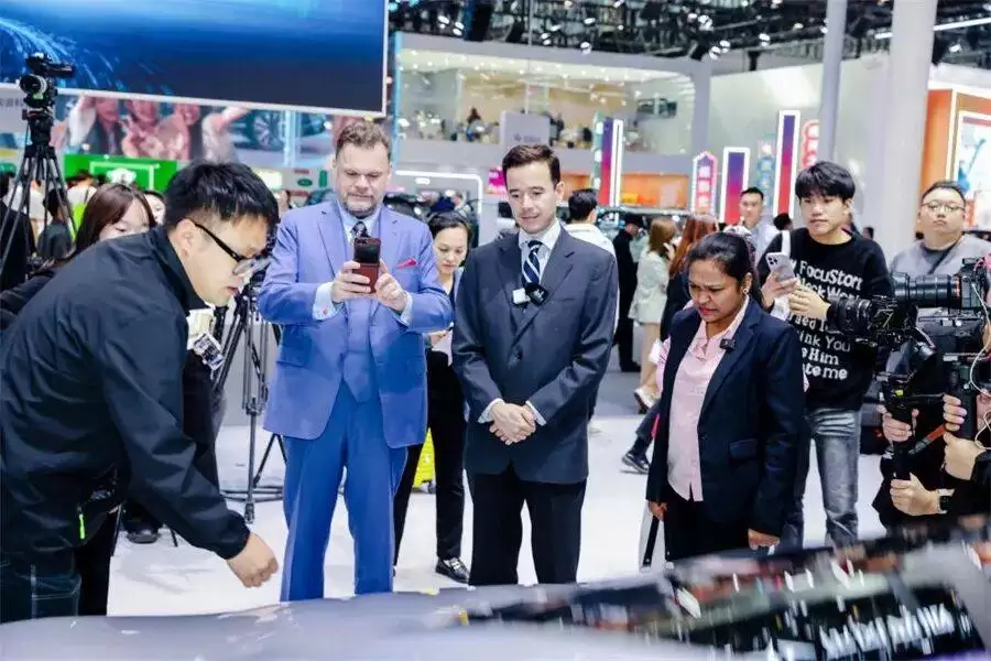 在广州国际车展璀璨的灯光下,长安启源展台迎来了一批特殊的参观者——来自多国的驻华外交官。他们带着专业的审视目光,对长安启源A06展开了细致品鉴,从流畅车身线条到智能交互系统,从乘坐舒适感受到核心技术亮点,每一处细节都成为他们关注的焦点。这场跨越国界的汽车对话,不仅展现了中国新能源汽车扎实的产品实力,更让国际友人对于"中国智造"有了全新的理解。