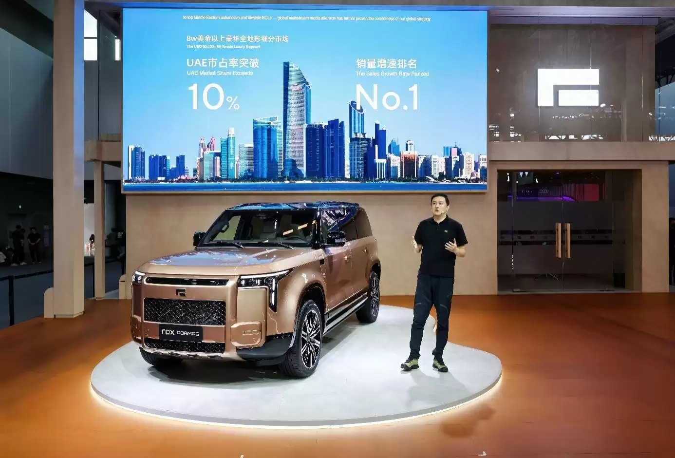 2025年,极石汽车的全球化布局取得了显著成效。截至目前,品牌已成功进入近40个国家市场,构建起覆盖中东、中亚、北非等重点区域的销售网络,并且连续10个月实现销量稳健增长。在以豪华著称的阿联酋市场,极石汽车在8万美金以上豪华全地形细分领域中市占率突破10%,销量增速位居第一,发展势头强劲。在本届广州车展期间,极石汽车进一步拓展全球市场,与来自喀麦隆、突尼斯、摩洛哥的优质合作伙伴完成签约,持续推进渠道网络的全球化建设。