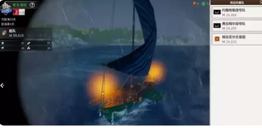 自动战斗功能在玩家达到15级时解锁,开启后就能随时使用。航海时只要看到视野中的船队,点击即可切换到观察模式。这里可以清楚看到敌方舰队的战斗力数值,以及我方的物资储备情况。切记不要盲目硬闯,建议先对比敌我双方的数值差距,还有我方的续航能力。如果实力悬殊较大,不如选择社交互动或是直接绕行。若是实力相当,直接点击战斗选项,马上就能发起宣战。如果同一海域的舰队数量较多,还能通过快捷菜单来调整目录。
