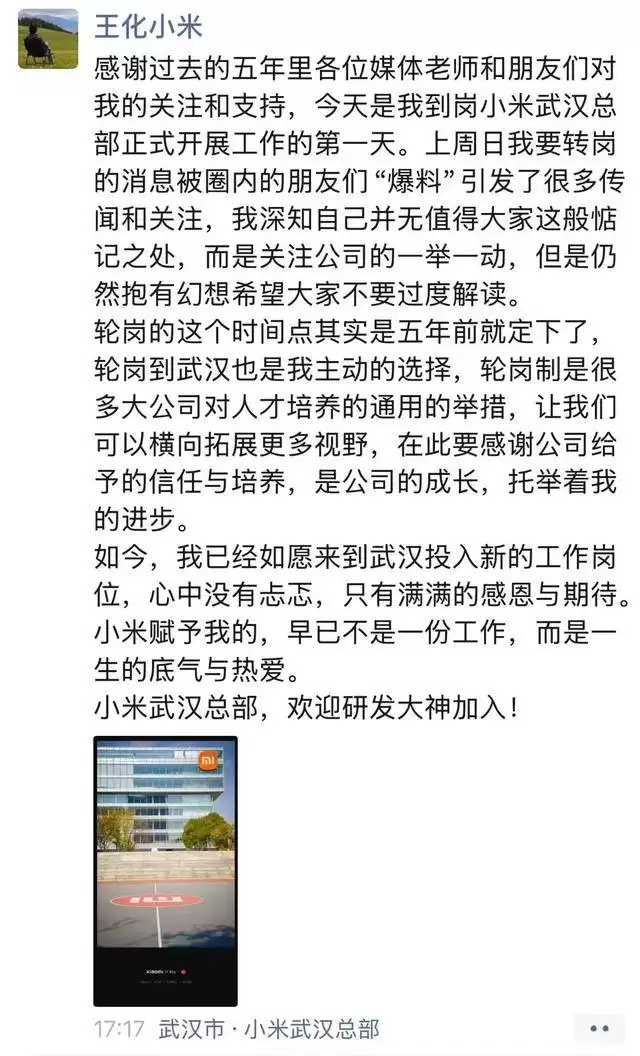 小米高层变动:王化转战武汉 徐洁云回归执掌公关