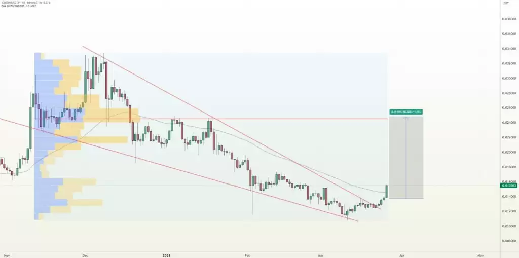 "图表世界"(@worldofcharts1)在 SHIB/USDT 图表中发现了一些看涨信号。他在周三的分析中指出,SHIB 已经突破了自 12 月高点以来形成的数月下降通道。