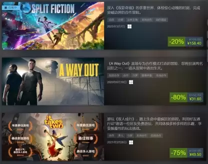 大促期间,另外两款来自 Hazelight 工作室的优秀合作游戏也将参与促销!