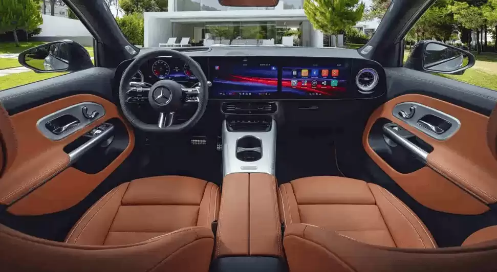 内饰配置迎来全面升级,标配由10.25英寸数字仪表盘与双14英寸中控屏组成的三联屏系统,搭载最新一代MBUX智能交互系统。悬浮式中控台设计配合全新造型方向盘,营造出强烈的科技氛围。空间布局延续5座/7座双版本策略,第二排座椅支持多向调节,第三排通道经过优化设计,全景天窗更可选装智能调光星空顶配置。