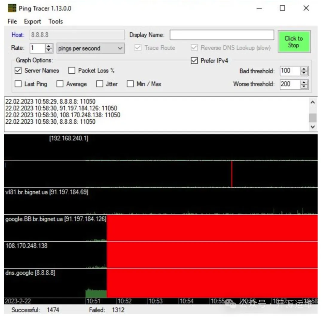 和系统自带的只能测一次 route 追踪不同,Ping Tracer 会对整条网络路径上的所有主机进行持续的 ping 测试。只要你开着它,它就会不知疲倦地工作。这对发现偶发性的网络问题特别有用——有些问题可能一闪而过,但只要发生了,就会被这个工具精准地捕捉到。