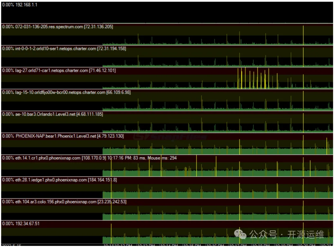 延迟可视化是它最核心的功能,把抽象的网络延迟数据变成了直观的图表,就像心电图一样。你能实时看到每个网络节点(比如路由器、小区交换机、运营商服务器)的延迟波动情况——哪个节点突然延迟飙升,哪个节点不稳定,都会在图上清晰地展现出来,连那些细微的抖动都看得一清二楚。